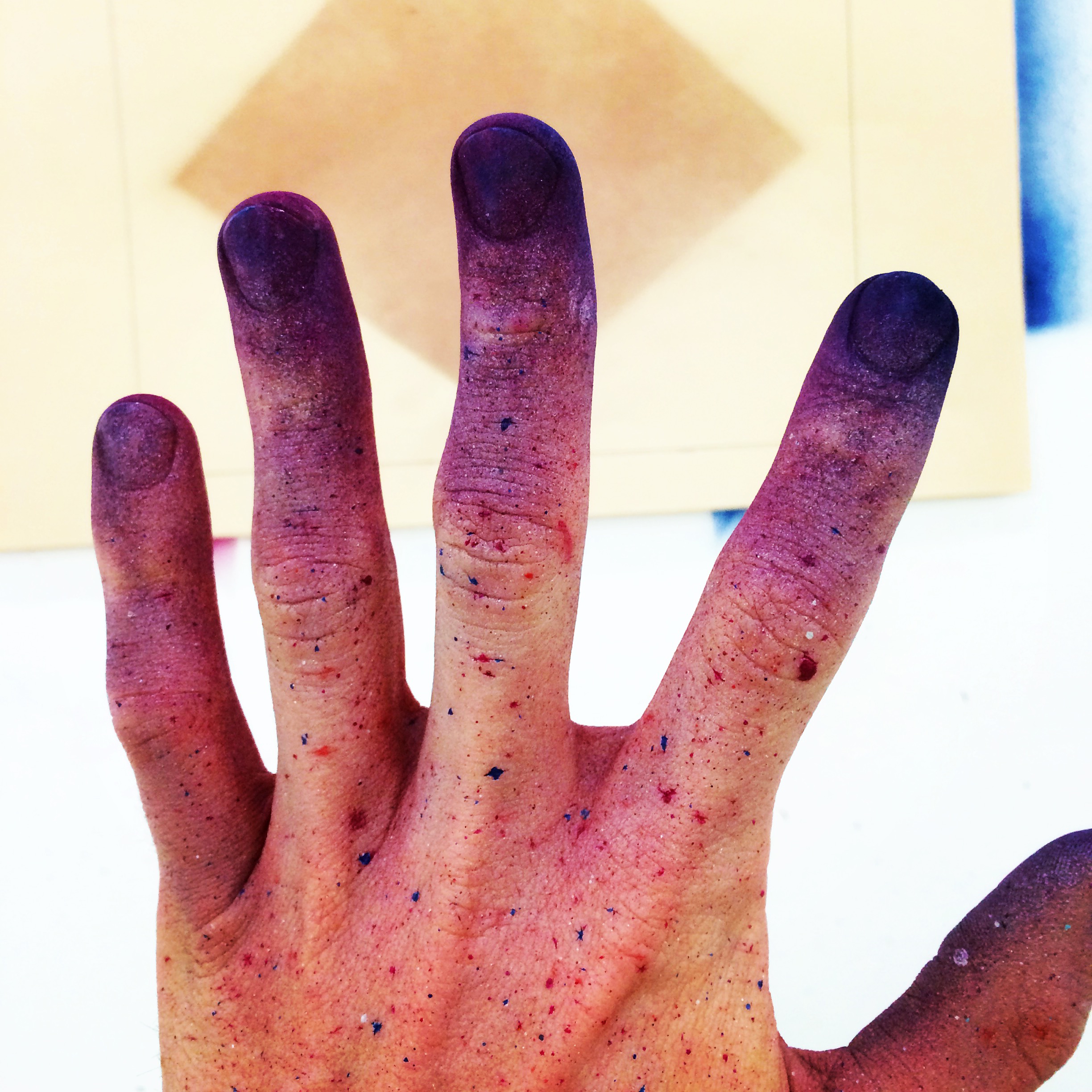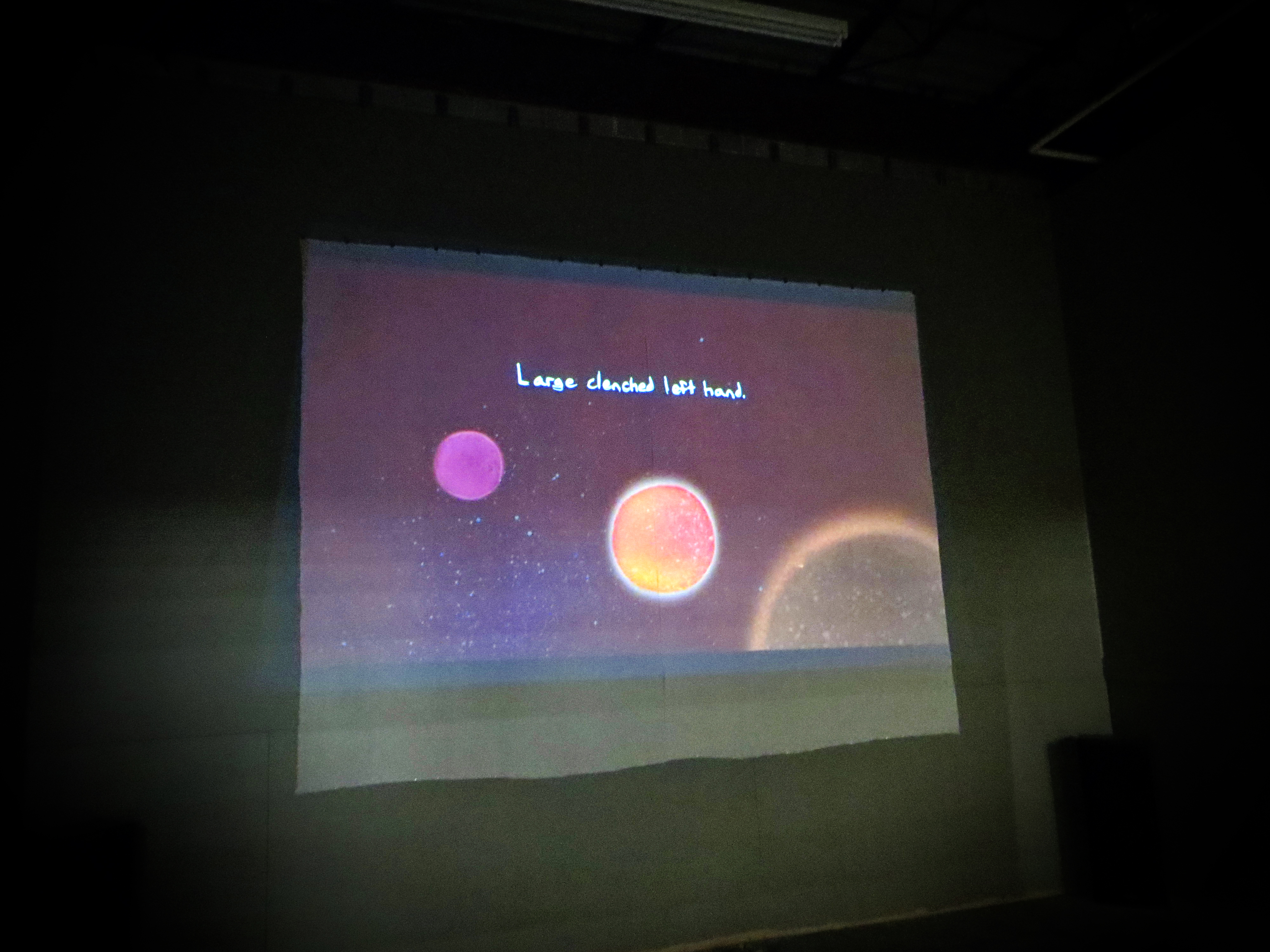 “Large clenched left hand”*
